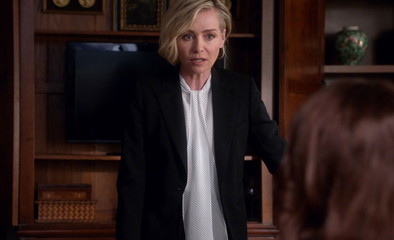 Elizabeth North (Portia de Rossi) has reached the end on Scandal. In last night’s episode, Mellie (Bellamy Young) met with Elizabeth, the so-called mystery woman (Zoe Perry, daughter of Jeff Perry who plays series regular Cyrus Beene on the show) and her boss, Peus (David Warshofsky). The two told Mellie that they secured enough electoral college votes for her to be the president and that the mystery woman would be her chief-of-staff instead of Elizabeth. Mellie said she wasn’t afraid of them and that may have been true until they beat Elizabeth with a gold club and killed her.