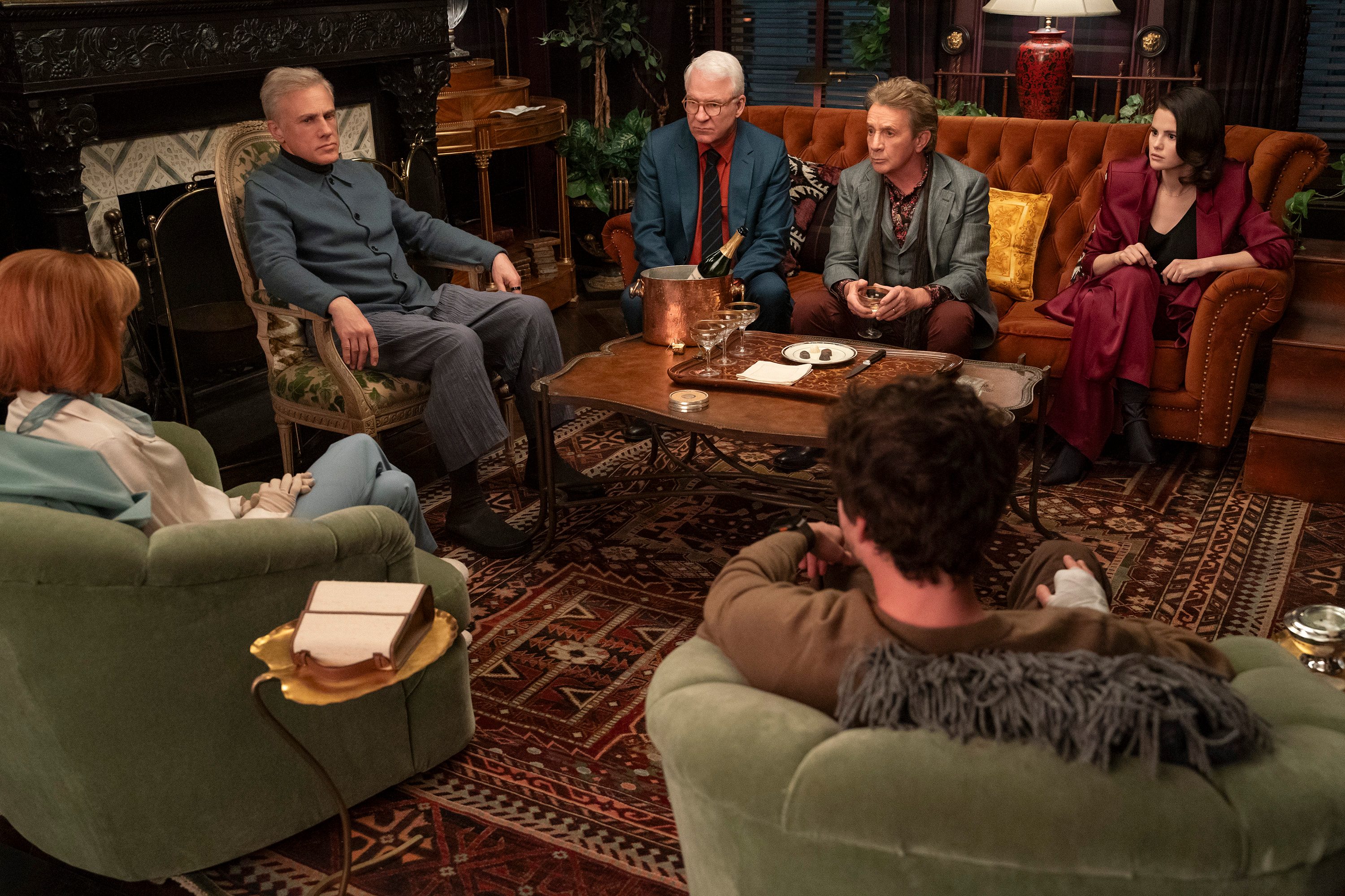 “Dirty Birds” is a great example of the two main aspects Only Murders in the Building has relied on since the beginning: a lovable main trio and exciting guest stars that complicate the mystery. This episode is almost entirely dedicated to the three mysterious billionaires and their talents for lies and manipulation. To bait Jay, the young billionaire short of a finger, the trio calls him out on their podcast. He arrives for their interrogation, quickly followed by the other billionaires. Not only do the billionaires all have compelling personalities tied to their fortune (home decor, artificial intelligence, and trust fund social media power), but they also interact electrically with the main trio. While there are smaller bits throughout the episode, such as the robot doorman and Mabel’s jealousy and resentment of Althea, the bulk of the episode takes place in Oliver’s apartment, with all three podcasters finding out that a drugged Nicky sliced off Jay’s finger. However, just as they get an office in Wondify, a popular podcast company, they find out that Jay’s missing finger is not the missing finger they’ve been hiding, and that the billionaires betrayed them. Not only did they all collectively lie about Jay’s finger, but they also manipulated the desperate trio into signing a contract that bars them from discussing any of the three billionaires on their podcast.